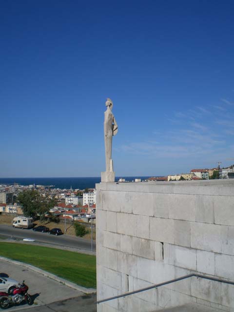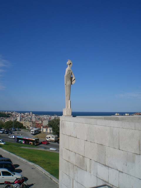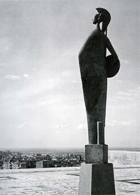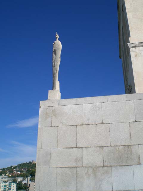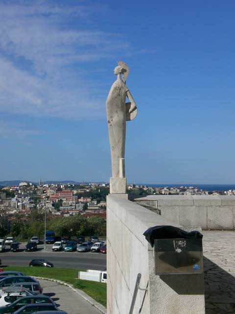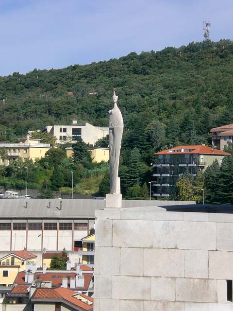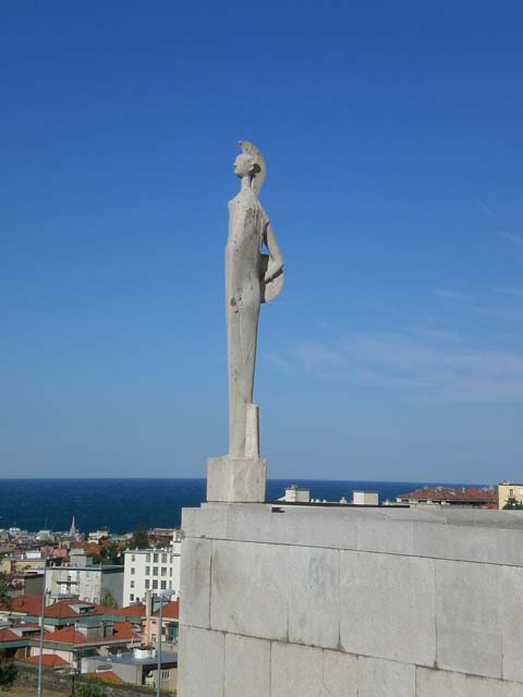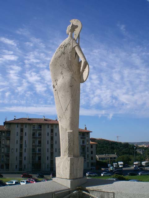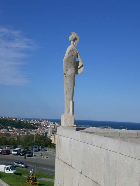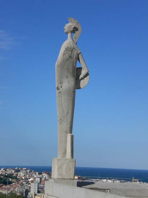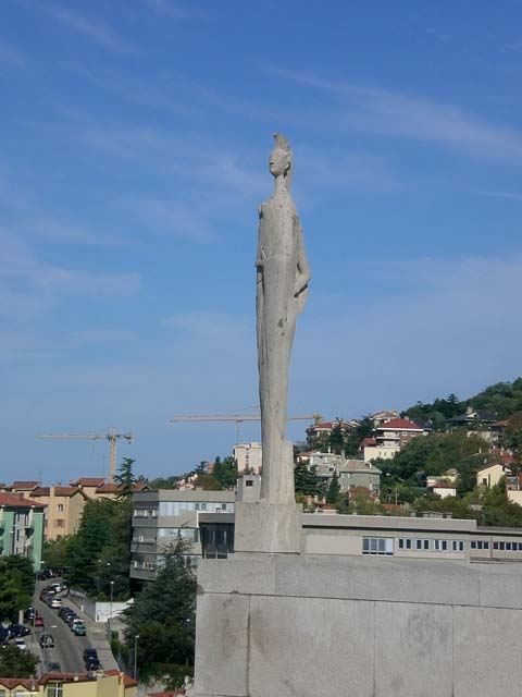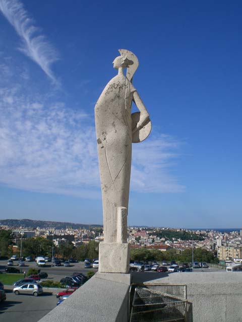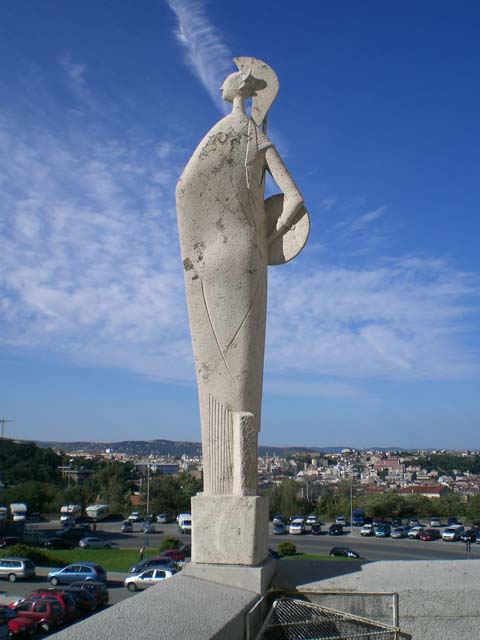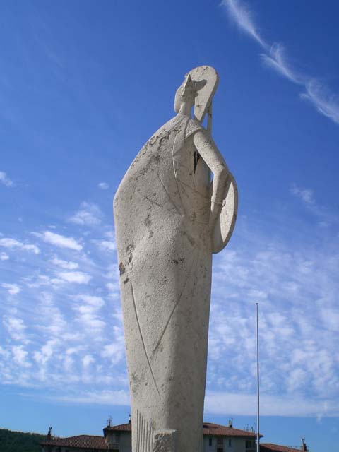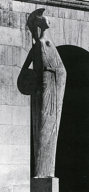 La dea Minerva è descritta come una figura femminile slanciata dalle forme sintetiche. Il corpo è